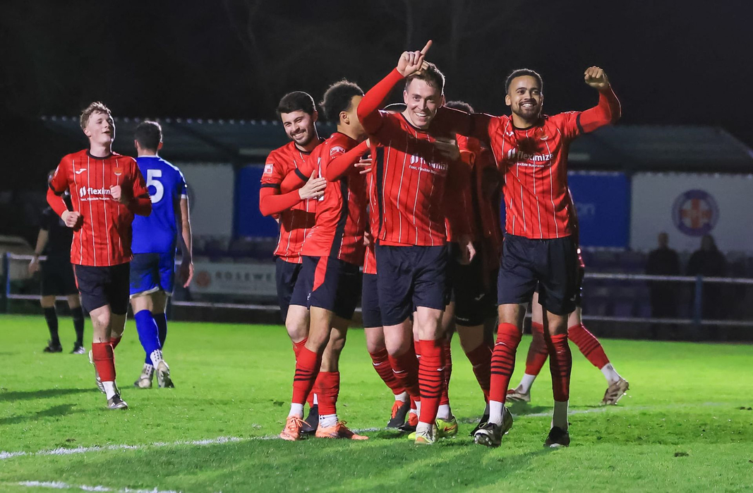 Eight place Wroxham were only three points away from the top five and hope to reduce that margin as they headed to Grays Athletic, but it was the hosts who took the points, despite playing much of the match with ten men. A red card for Ethan Cann looked to leave Athletic with an uphill struggle, but a goal from Caiden Remy-Dee delivered the points fifteen minutes from time. Athletic open up a five point gap between themselves and the drop zone.
