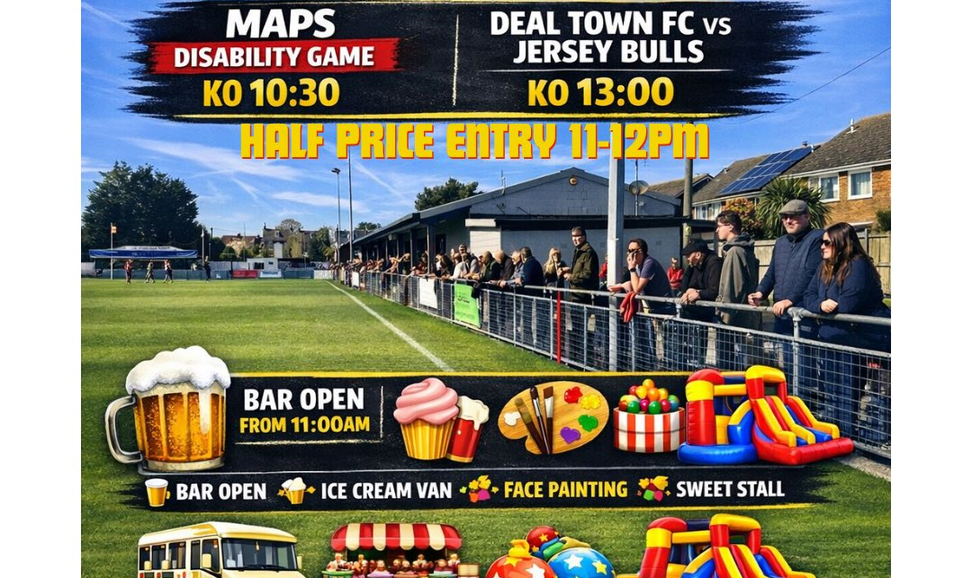 Saturday brings Deal Town's final home match of the season, with Play Off Semi-Finalists Jersey Bulls (barring a mathematical miracle) their visitors. The match will kick off early, at 1PM, and Deal have al sorts of entertainment on offer as they are also hosting a Community Day.