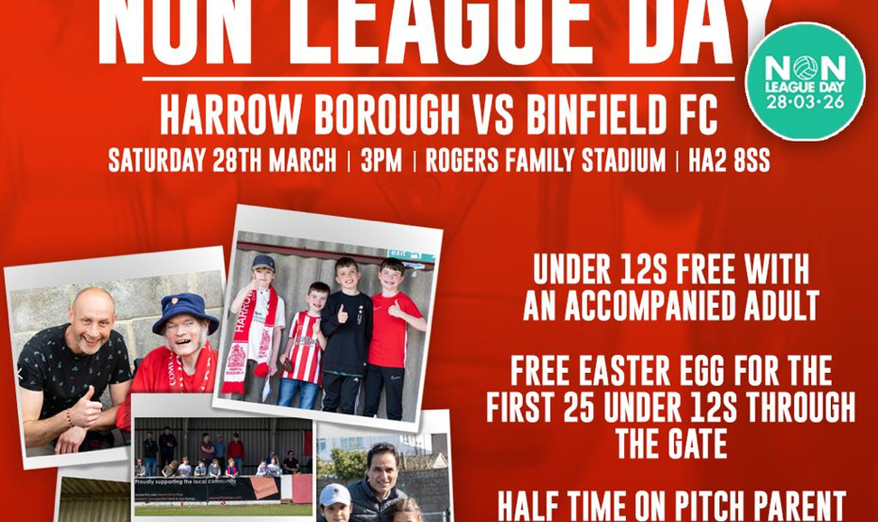 Harrow Borough welcome Binfield in a Non League Day match which is crucial to the visitors survival hopes- and you can watch for, well, whatever you like!