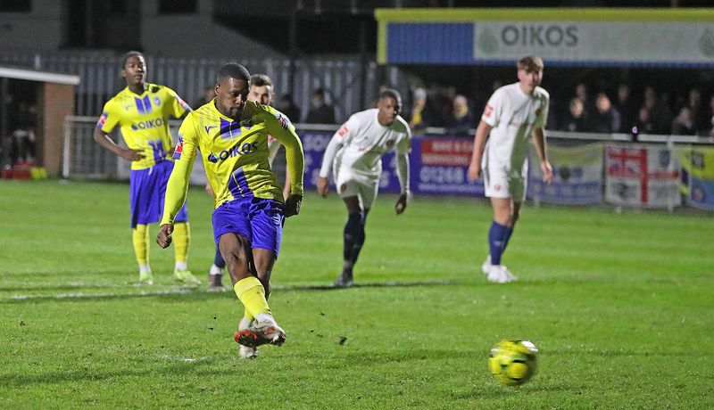 The travelling Motormen started at top speed, Solomon Ogunwomoju putting them ahead after five minutes and Kaya Hayrettin making it two only two minutes later. Midway through the first half Ryan Charles got the hosts back into the match, and soon afterwards it was two-two, Jayden Gipson with the equaliser. A red card for Prince Sikiru on the half hour seemed to leave the visitors with an uphill challenge, and Aveley went three-two up just before the hour, Joshua Colyer giving them the lead for the first time, but a spot kick from Malachi Napa made it three-three six minutes later.